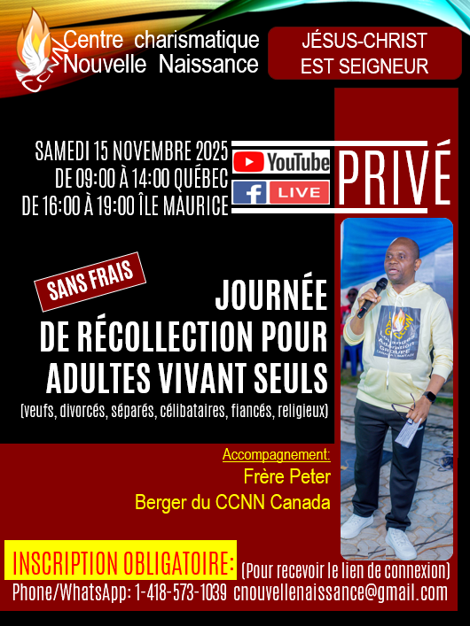 Le CCNN invite les charismatiques du diocèse de Québec sur le WEB pour une nouvelle série d’enseignements sur : « Restaure-moi, ô mon Roi! ». Les enseignements sont donnés par le Frère Peter.