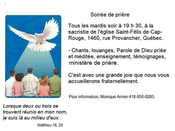LE GROUPE DE PRIÈRE CHARISMATIQUE DE SAINT-BERNARD VOUS INVITE