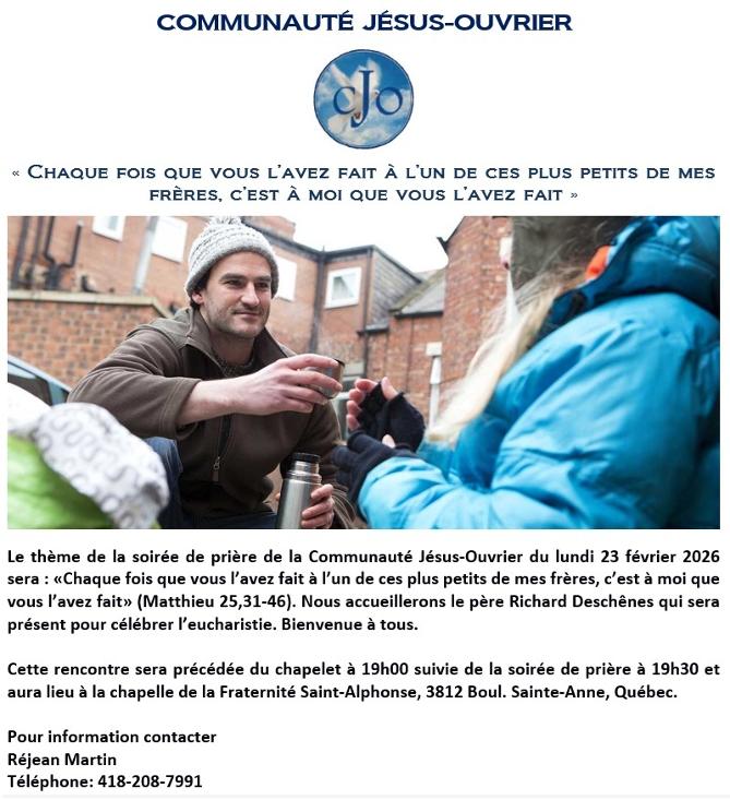 L'Adoration peut débuter à compter de 18h15, et la soirée dès 19h.