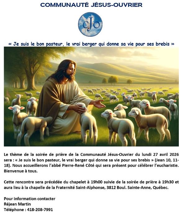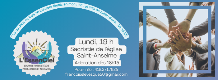 Nos rencontres de prière CHARISMATIQUES ont lieu tous les lundis sauf en cas de tempête, à compter de 19 heures, à la sacristie de l’église paroissiale de Saint-Bernard*. Vous êtes tous les bienvenus.