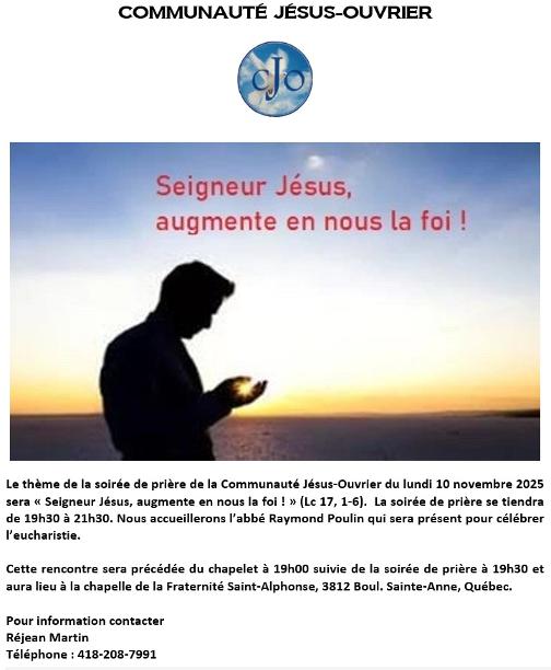 À une réunion spéciale le 10 novembre 2025, à la sacristie, sous le thème : Les âmes du purgatoire, avec le diacre Jocelyn St-Pierre de Saint-Jean-Port-Joli. Ceci sera une suite de la réunion du 29 septembre.