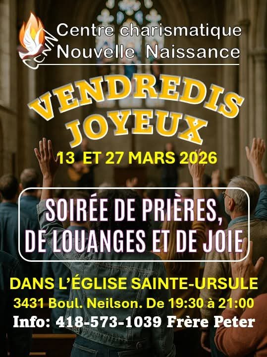 Le Centre Charismatique Nouvelle Naissance (CCNN) vous invite à des activités d’évangélisation sur le WEB, pour le mois de mars 2026 :