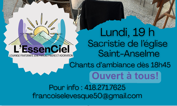 ▪ Paroisse St François Laval à l’adresse courriel : paroisse@limoilou.ca ou par téléphone au 418 623-4926 poste 100. Entrons en 2026 dans la présence et l'amour de Jésus le Christ!